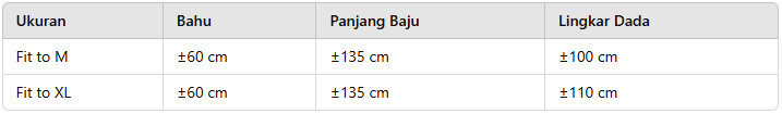 Nb : Selisih size 1-2 Cm