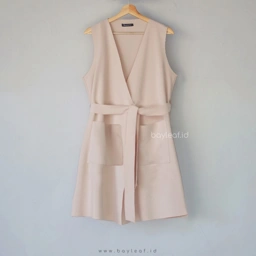 Desain outer ini dibuat unfinished cutting jadi meskipun nggak dijahit tepi udah kelihatan rapi banget, bagian pinggang juga dilengkapi adjustable belt dan detail patch pockets di kanan kiri..