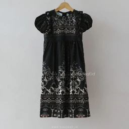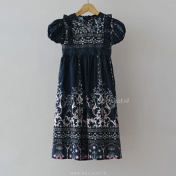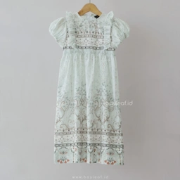 Dress ini menggunakan material premium yang beneran juara ademnya. Teksturnya lembut banget di kulit anak, jatuh dengan cantik, dan nggak bikin gerah meskipun si kecil lagi aktif-aktifnya di acara keluarga atau hari raya.